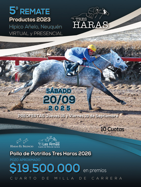 Realizamos varios remates al año junto con Haras Las Armas y criadores invitados que utilizan nuestra genética en sus productos (Remate Tres Haras) en el norte y en el sur del país. Los productos participantes tienen derecho a correr las pollas correspondientes a su generación en el siguiente año.
